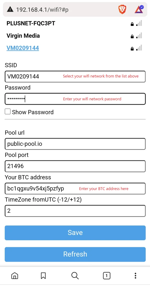 Qualquer que seja o método detalhado acima que você escolher, você precisará configurar o dispositivo para se conectar à sua rede Wi-Fi e inserir um endereço bitcoin no qual deseja receber a recompensa do bloco se o seu NerdMiner encontrar um bloco.